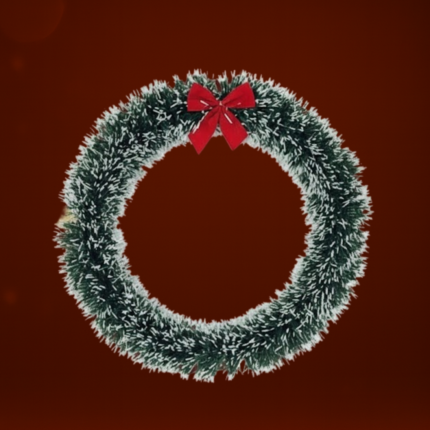 Decora tu hogar con esta hermosa corona navideña de 30 cm, perfecta para puertas, paredes, ventanas o recibidores. Su diseño con follaje verde frondoso y efecto de nieve le da un toque clásico y festivo, mientras que el lazo rojo al centro aporta elegancia y calidez navideña.