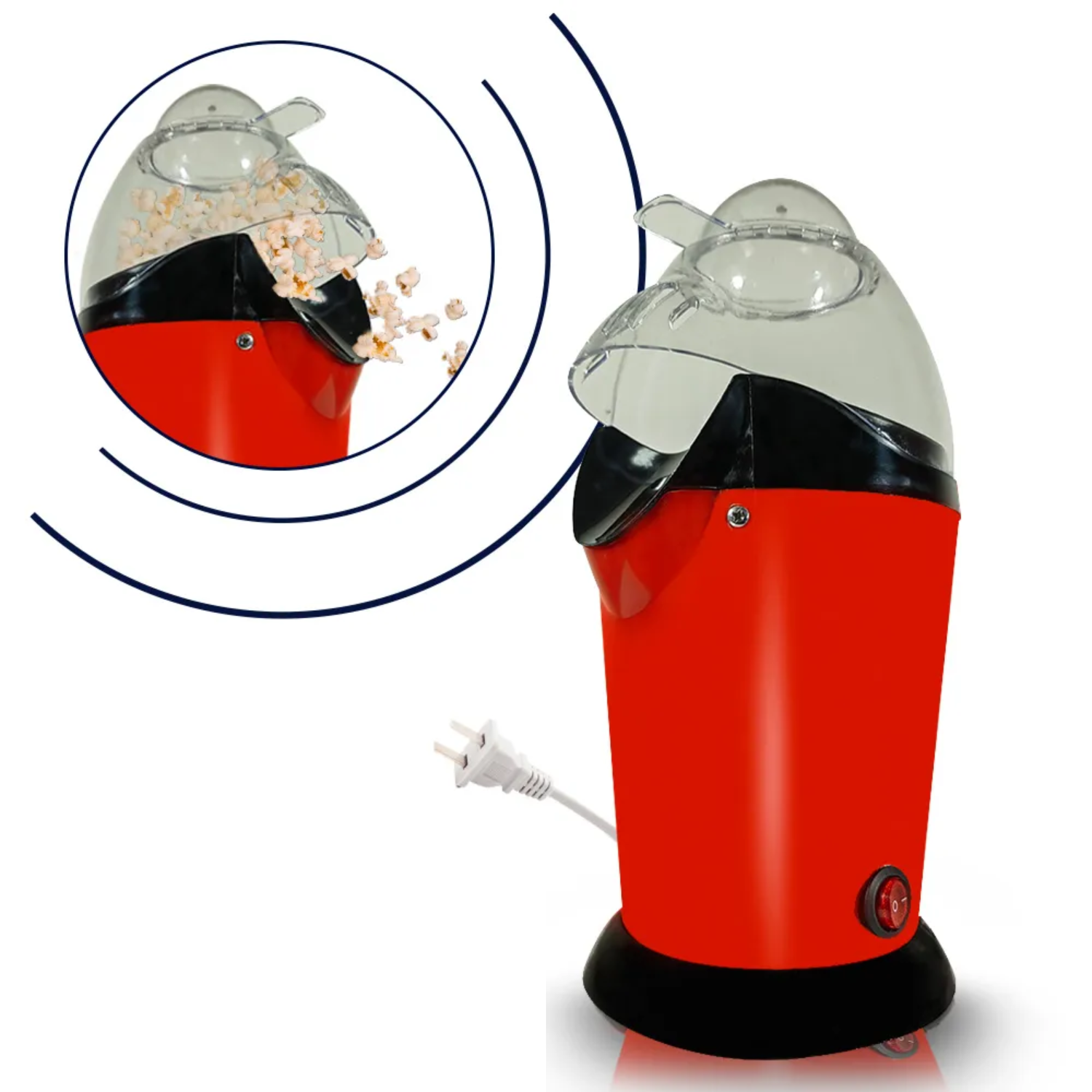 Prepara tu canchita favorita en casa en solo minutos con esta máquina de pop corn eléctrica, que funciona 100% sin aceite, ideal para disfrutar snacks más saludables. Su diseño compacto (29 cm de alto) y potente sistema de aire caliente hacen explotar los granos de forma uniforme y rápida.